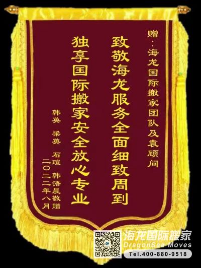 天津搬家到澳洲朗塞斯頓,由于定居澳洲一直非常希望將國(guó)內(nèi)自己收藏多年的書(shū)本和家具都運(yùn)輸?shù)桨闹?,由于?shū)本非常多有40多立方,各種類(lèi)型的書(shū)本都是上一輩自己自己慢慢積累下來(lái)的,對(duì)于我們來(lái)說(shuō)這是非常寶貴珍貴的回憶和經(jīng)歷,很多公司因?yàn)闀?shū)本太多無(wú)法報(bào)關(guān)清關(guān),剛好海龍專(zhuān)業(yè)做私人物品清關(guān),達(dá)成了這次愉快的合作。雖然在澳洲海關(guān)對(duì)于登錄澳洲這么多年為什么運(yùn)輸多的書(shū)本有疑問(wèn)需要抽查和收稅,好在有袁顧問(wèn)專(zhuān)業(yè)的指導(dǎo)和耐心的幫助,幫忙搞定了解釋信,最后這邊的海關(guān)還是給我們免稅了,感謝袁顧問(wèn)幫我們剩下了一大筆費(fèi)用,為表示對(duì)海龍的感謝和袁顧問(wèn)的認(rèn)可,定做一面錦旗表示我們的心意,祝愿海龍生意興隆,袁顧問(wèn)工作順利。這次完美的搬家體驗(yàn)是值得分享的!將來(lái)如果還需要運(yùn)寄貨物的還是首先海龍海運(yùn)!