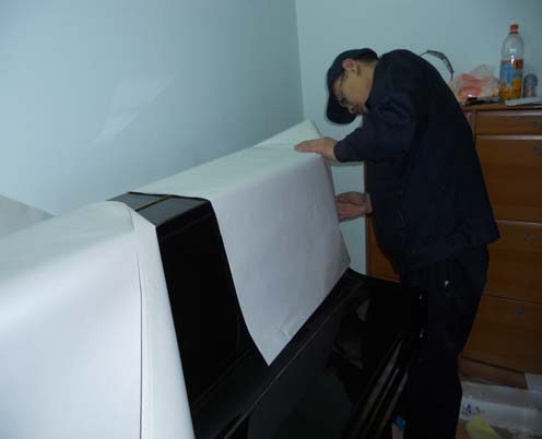 2當然還有那個我很喜歡的大鋼琴。在包裝鋼琴的時候,我還真有點擔心會刮花或者有些碰撞。只見包裝師傅將鋼琴蓋打開,將里面的琴鍵固定,并一條專業(yè)的泡沫條放入音錘下,說是可以防止音錘斷裂。